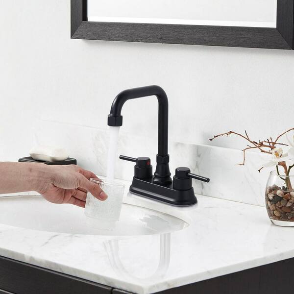 Modern Double Handle 4 in. Centerset Bathroom Faucet, Bathroom Faucet with Pop-Up Drain Assembly in Matte Black