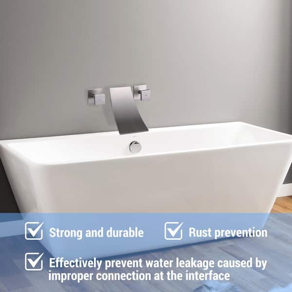 Modern Double-Handle Wall Mounted Roman Tub Faucet with Waterfall Spout in Brushed Nickel