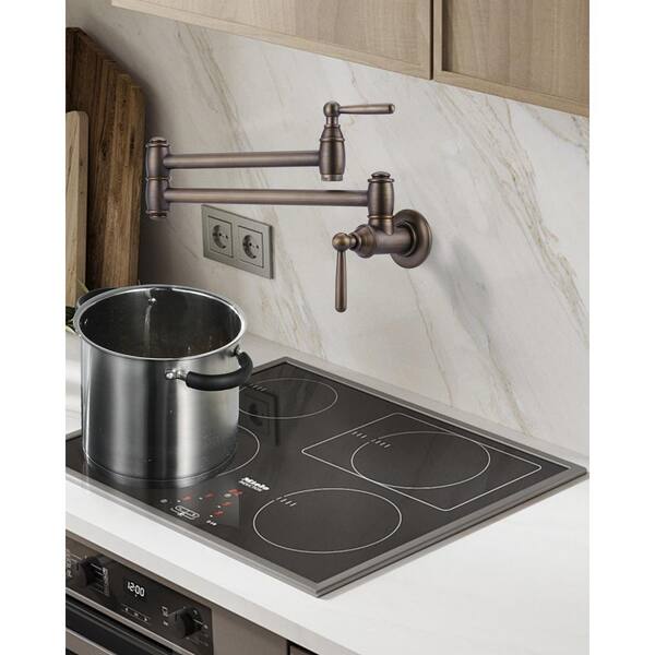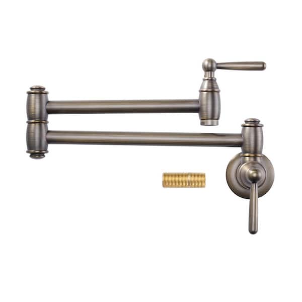 Retro Wall Mounted Brass Pot Filler Stretchable Kitchen Faucet with Double Joint Swing Arm in Antique Bronze