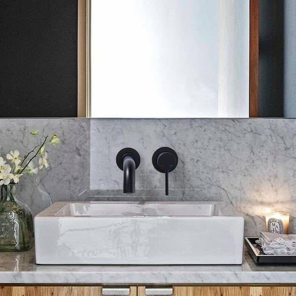 Single Handle 2-Hole Wall Mounted Bathroom Faucet with Rough-in Brass Valve in Matte Black