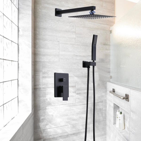 Single Handle 2-Spray Shower Faucet Set 1.8 GPM 10 in. Rain Shower Head and Handheld Spray with Valve in. Matte Black