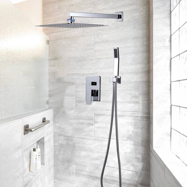 Single Handle 2-Spray Shower Faucet Set 1.8 GPM 12 in. Rain Shower Head and Handheld Spray with Valve in Polished Chrome