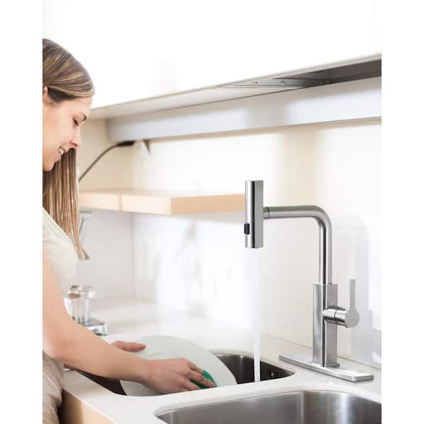 Single Handle 3-Mode Waterfall Pull Down Sprayer Kitchen Faucet with Deckplate and Supply Lines in Brushed Nickel