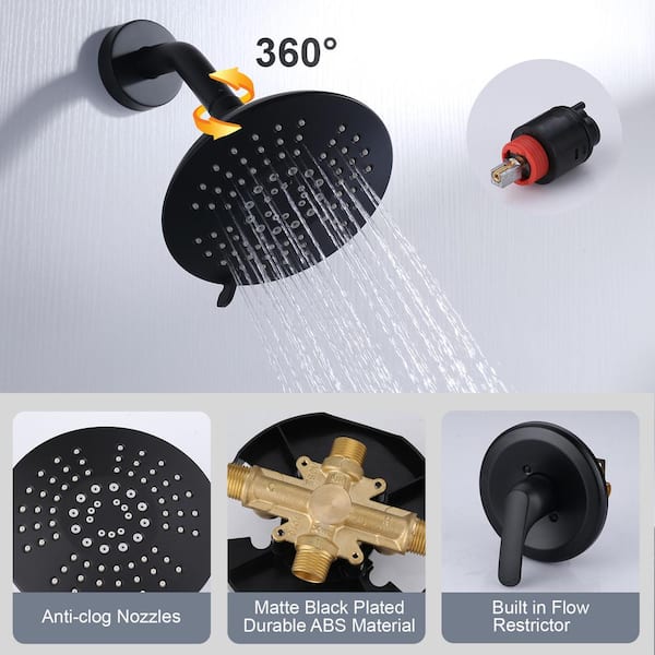 Single Handle 5-Spray Round Shower Faucet 1.8 GPM with Tub Spout in. Matte Black (Valve Included)