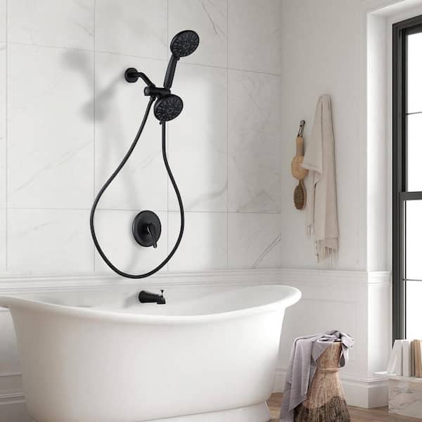 Single Handle 7-Spray Tub and Shower Faucet 1.8 GPM in. Matte Black Pressure Balance Valve Included