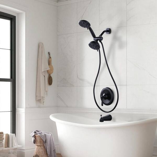 Single Handle 7-Spray Tub and Shower Faucet 1.8 GPM in. Matte Black Pressure Balancing Shower Mixer Valve Included