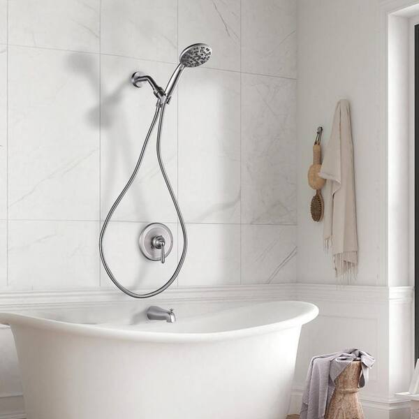 Single Handle 7-Spray Tub and Shower Faucet 1.8 GPM with Adjustable Shower Head in Brushed Nickel (Valve Included)