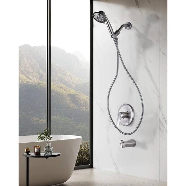 Single Handle 8-Spray Shower Faucet 1.8 GPM with High Pressure Tub Spout and Shower Trim Kit Valve in. Bruhsed Nickel