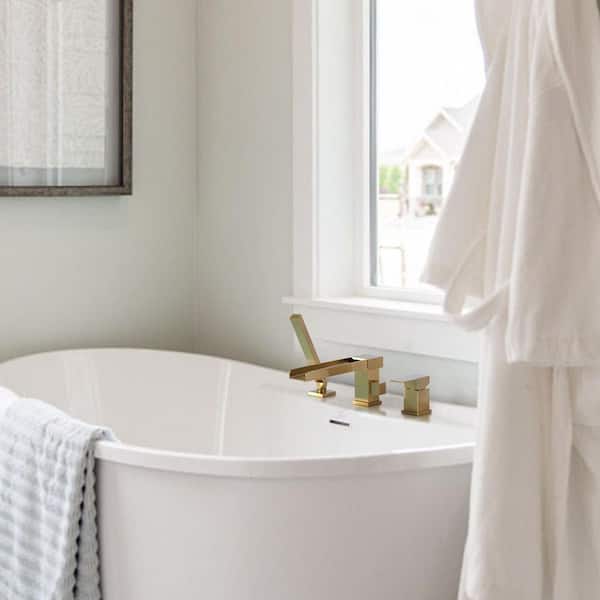 Single-Handle Deck-Mount Roman Tub Faucet with Hand Shower in Gold