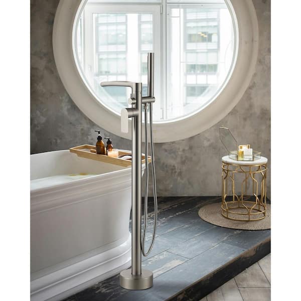Single-Handle Freestanding Tub Faucet with Hand Shower in Brushed Nickel
