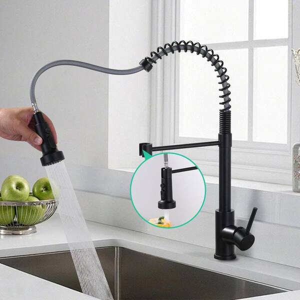 Single Handle Pull-Down Sprayer Kitchen Faucet with 3 Spray Mode Stainless Steel in Matte Black