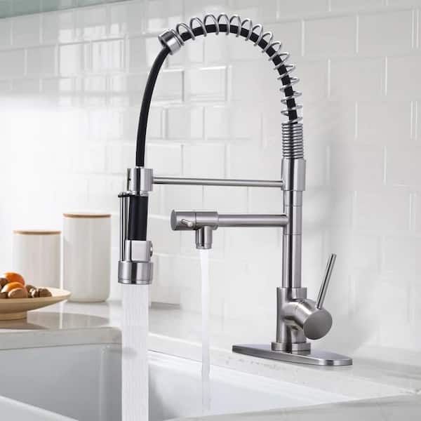 Single Handle Pull Down Sprayer Kitchen Faucet with Brass and 2 Water Modes in Brushed Nickel