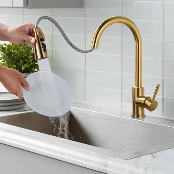 Single Handle Pull Down Sprayer Kitchen Faucet with Touchless Sensor Stainless Steel in Gold