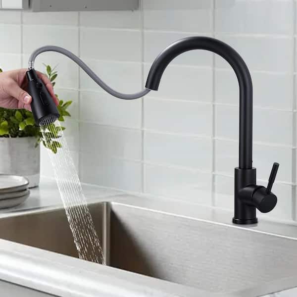 Single Handle Pull Down Sprayer Kitchen Faucet with Touchless Sensor Stainless Steel in Matte Black