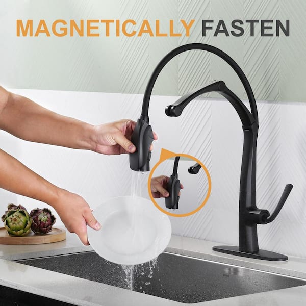 Single-Handle Pull-Out Sprayer Kitchen Faucet with with Magnetic Docking Spray Head in Matte Black