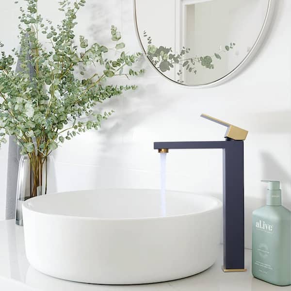 Single Handle Single Hole Bathroom Faucet with Drain Include in Black and Gold