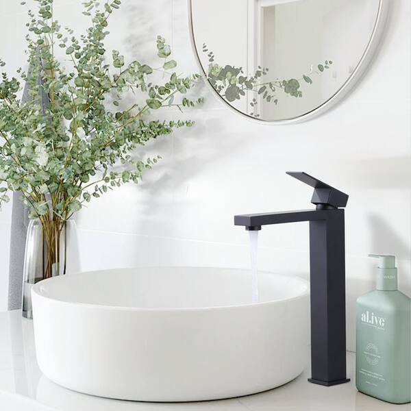 Single Handle Single Hole Bathroom Faucet with Drain Include in Matte Black