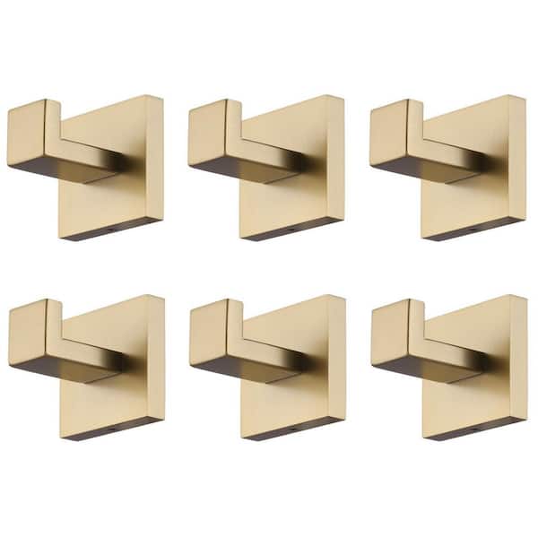 Stainless Steel Wall-Mounted J-Hook Bathroom Robe/Towel Hook in Brushed Gold (6-Pack)