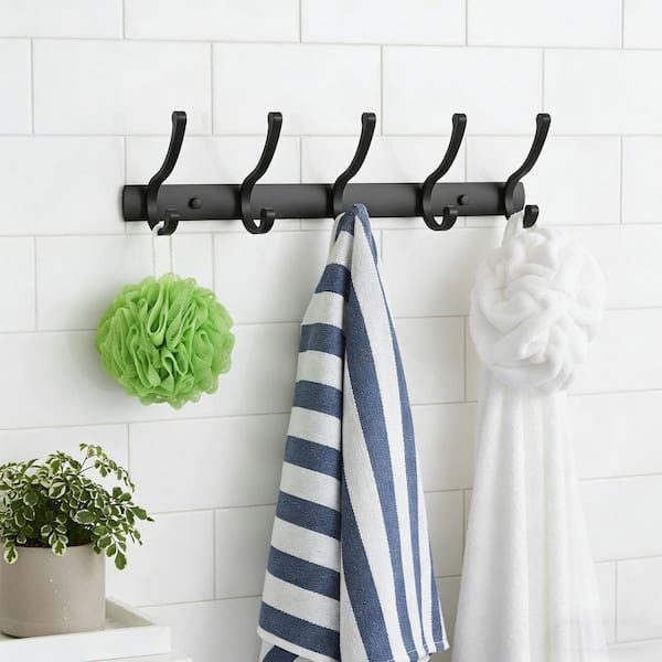 Wall Mounted Coat Rack J-Hook Robe/Towel Hook in Matte Black
