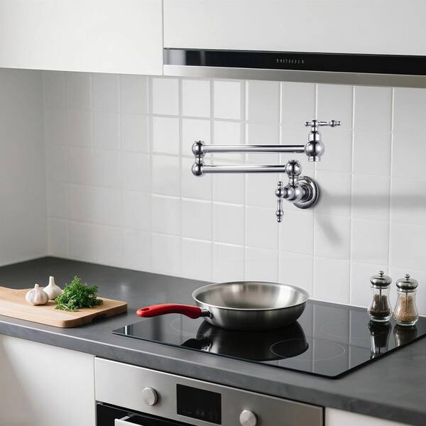 Wall Mounted Pot Filler with Level Handle in Polished Nickel