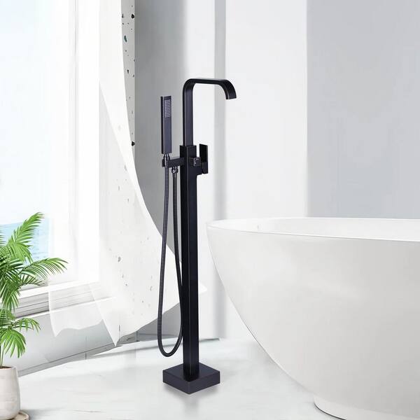 Waterfall Single-Handle Freestanding Floor Mount Tub Faucet Bathtub Filler with Hand Shower in Oil Rubbed Bronze