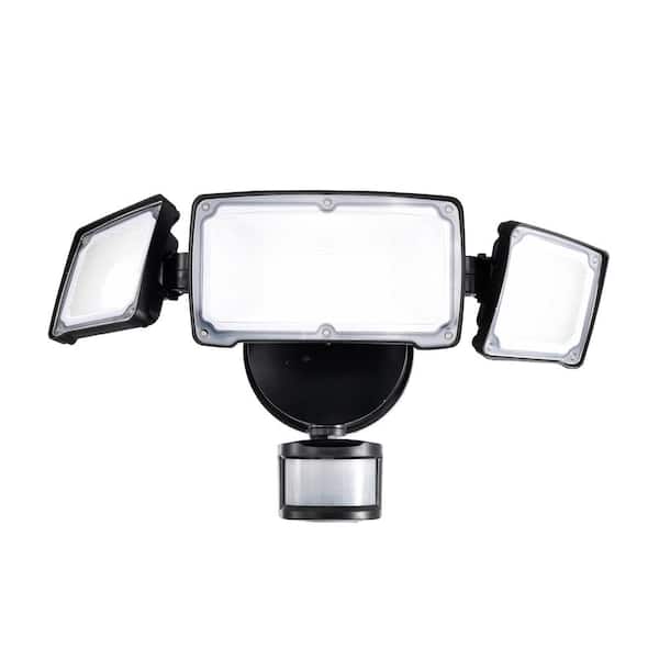 Black 40-Watt 3800-Lumen 180° Motion or Dusk to Dawn Control 3-Head Outdoor Integrated LED Security Flood Light 2-Pack
