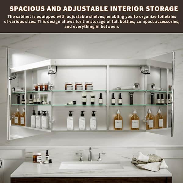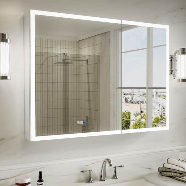 AZD 40 in. W x 30 in. H Rectangular Silver Aluminum Recessed/Surface Mount LED Dimmable Medicine Cabinet with Mirror