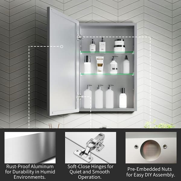 20 in. W x 24 in. H Rectangular Aluminum Recessed/Surface Mount Medicine Cabinet with Mirror and Easy Hang System