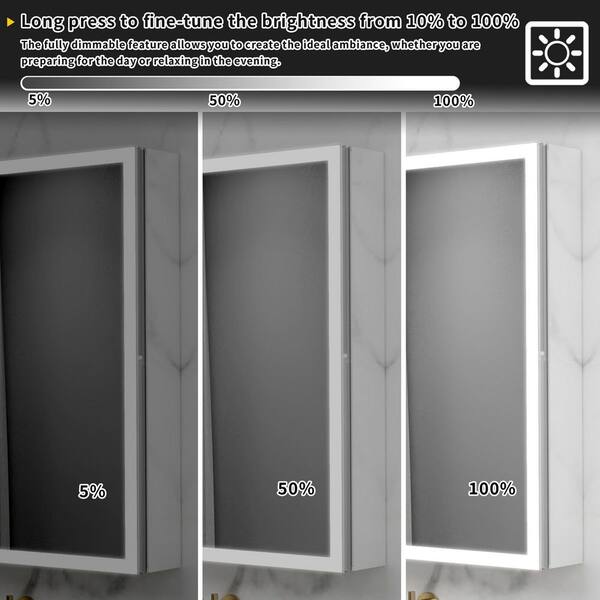 24 in. W x 30 in. H Rectangular Silver Aluminum Recessed/Surface Mount Lighted Medicine Cabinet with Mirror Open Left
