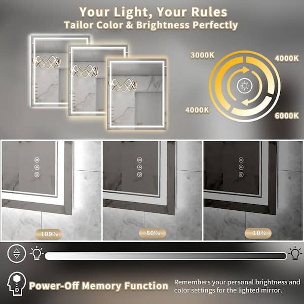 24 in. W. x 40 in. H Rectangular Frameless LED Anti-Fog Wall Bathroom Vanity Mirror in Silver, Defogging, Dimming