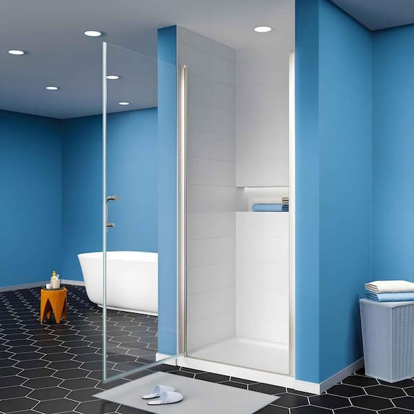 28-29.9 in. W x 72 in. H Brushed Nickel Frameless Pivot Shower Door with 1/4 in. Thick Clear Tempered Glass