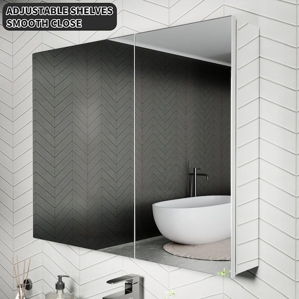 30 in. W x 24 in. H Rectangular Aluminum Recessed/Surface Mount Medicine Cabinet with Mirror and Easy Hang System