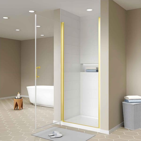 34-35.9 in. W x 72 in. H Pivot Swing Frameless Shower Door with 1/4 in Clear SGCC Tempered Glass and Brushed Gold Finish
