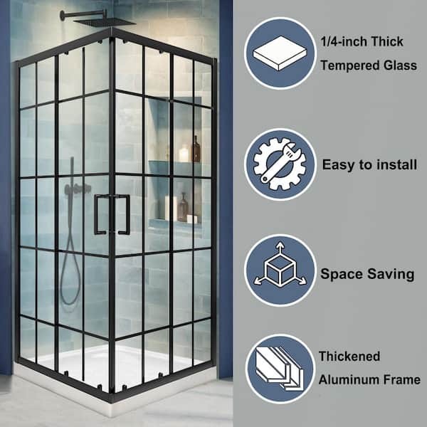 36 in. W. x 36 in. D x 71 in. H Sliding Frameless Corner Shower Enclosure in Matte Black With 1/4 in. Clear Glass
