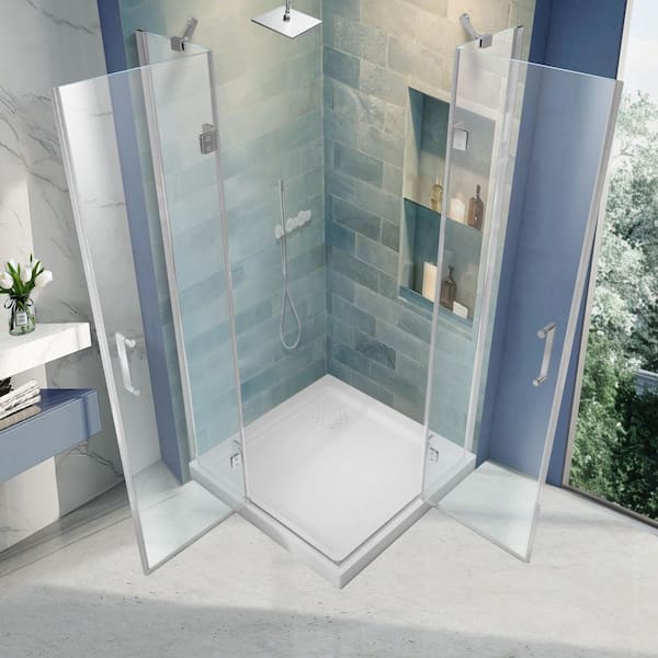 36 in. W. x 36 in. D x 72 in. H Neo Angle Pivot Frameless Corner Shower Enclosure in Chrome with Tempered Clear Glass