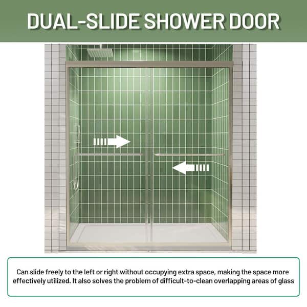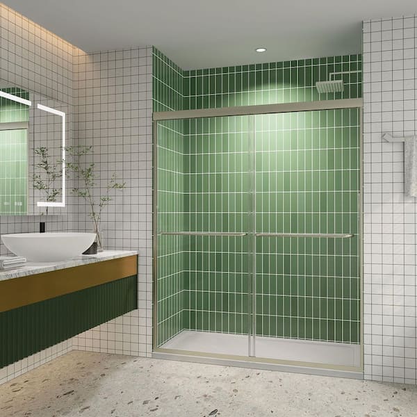 56 in. - 60 in. W x 72 in. H Double Sliding Semi-Frameless Shower Door in Brushed Nickel with Clear Glass