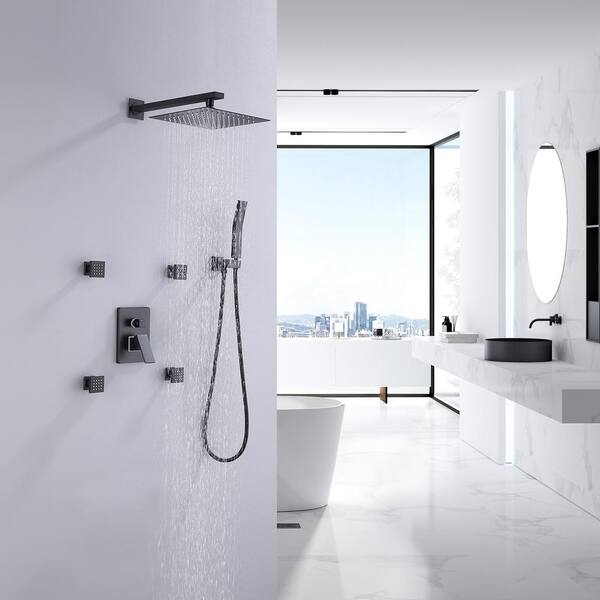 Aal Single-Handle 3-Spray 10 in. Square Wall Mount Shower Faucet with 4 Side Sprays in Matte Black (Valve Included)