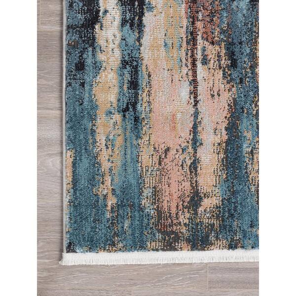 Azure Blue 7 ft. 9 in. x 10 ft. 2 in. Abstract Polyester Area Rug