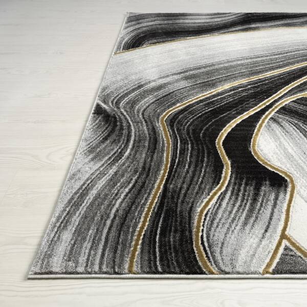 Luna Dark Grey 4 ft. x 6 ft. Abstract Polypropylene Polyester Area Rug