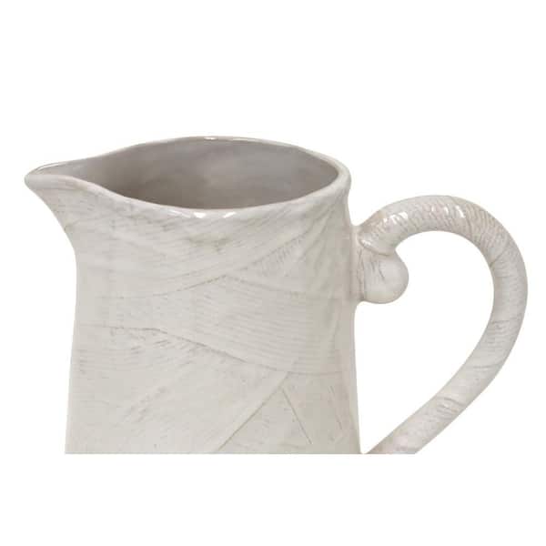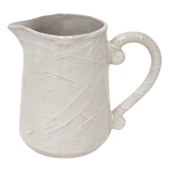 • Ivory ceramic pitcher complements any table decor