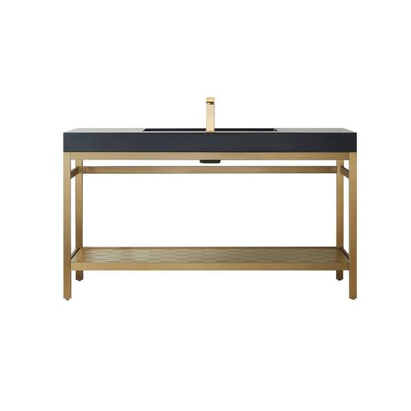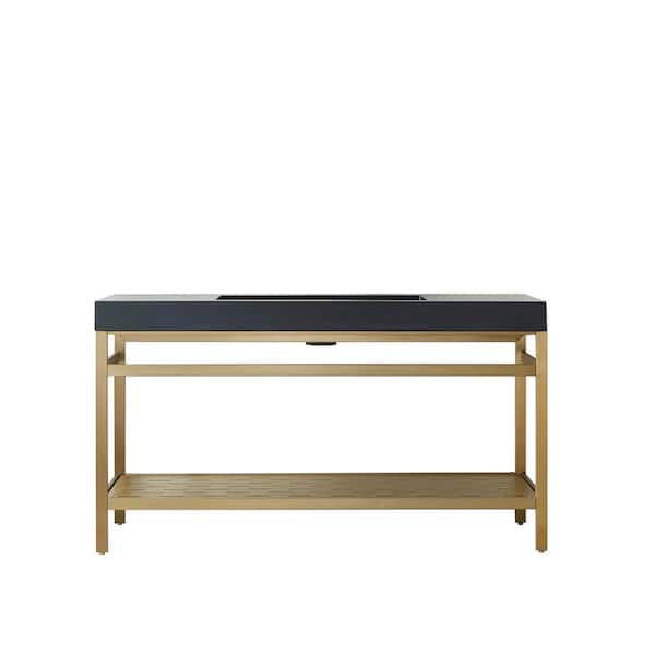 Ablitas 60 in. W x 20 in. D x 34 in. H Bath Vanity in Brushed Gold with Black Composite Stone Top