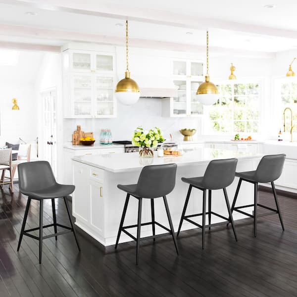 Abraham Dark Gray 24 in. Low Back Metal Frame Faux Leather Upholstered Cushioned Counter Bar Stool (Set of 2)