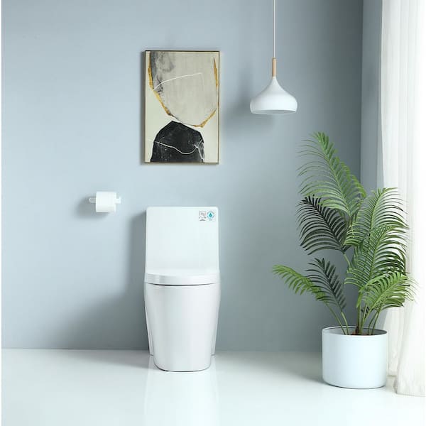 1-Piece Toilet 1.1 GPF/1.6 GPF Dual Flush Elongated Toilet in Glossy White Seat Included