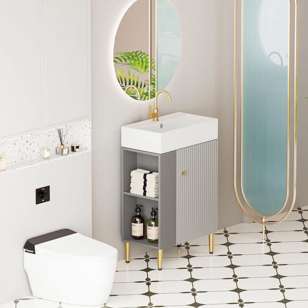 21-5/8 in. W x 12-1/5 in. D x 33-7/8 in. H Single Sink Left Side Open Shelf Bath Vanity in Grey with White Ceramic Top