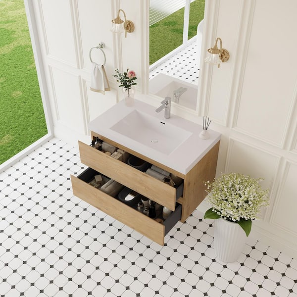 36 in. W x 19-3/4 in. D x 22-1/5 in. H Bathroom Wall Hung Vanity in Natural Oak with Single Basin Vanity Top in White