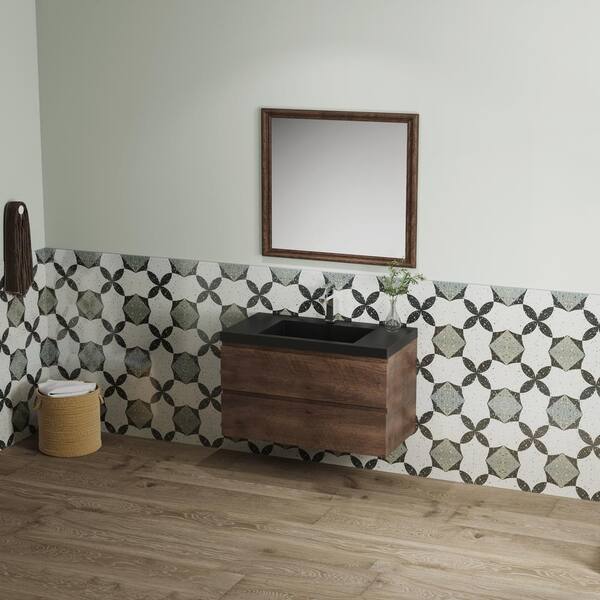 Angela 36 in. W x 18.7 in. D x 20.5 in. H Wall Mounted Floating Vanity with Rosewood Cabinet Black Quartz Sand Sink