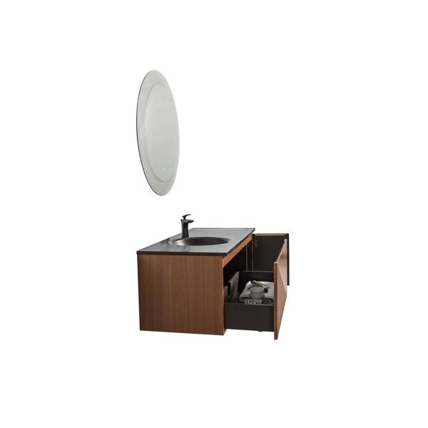 Simon 48 in. W x 20.90 in. D x 17.70 in. H Walnut Thermafoil Vanity Set in Walnut garin with Quartz sand top,Black basin