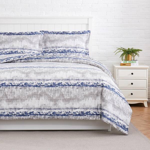 Abstract 3-Piece Blue Full/Queen Cotton Duvet Cover Set