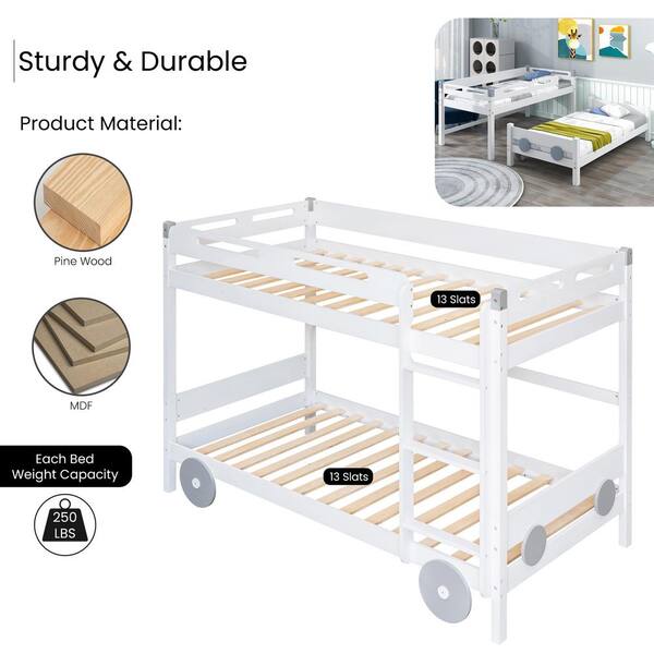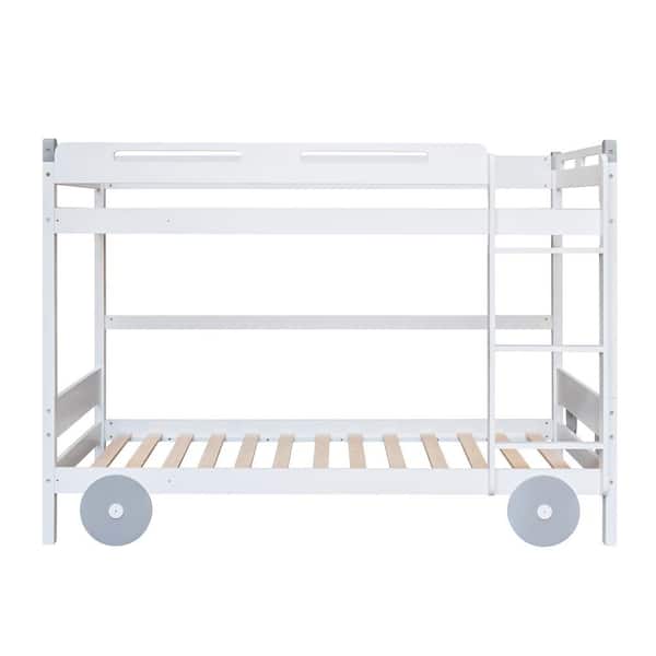 Abys White Twin over Twin Size Car-Shaped Convertible Bunk Bed