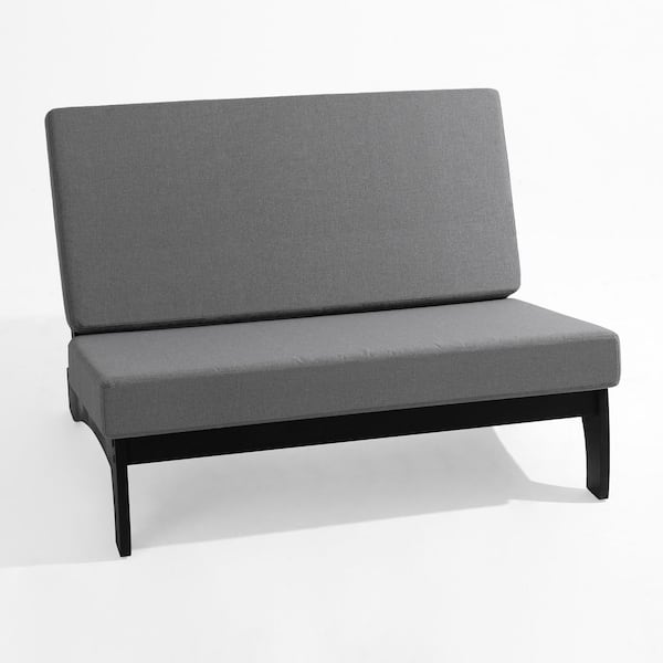 Acacia Wood Black Frame Outdoor Club Loveseat with Gray Cushions (Set of 1)